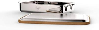 Lasagnera Lagostina Patrimonio in acciaio inox di alta qualità con coperchio in legno di Ciliegio. Gratin adatto all'induzione utilizzabile anche come Teglia da Forno (senza coperchio), lavabile in lavastoviglie (no coperchio). Made in Italy.