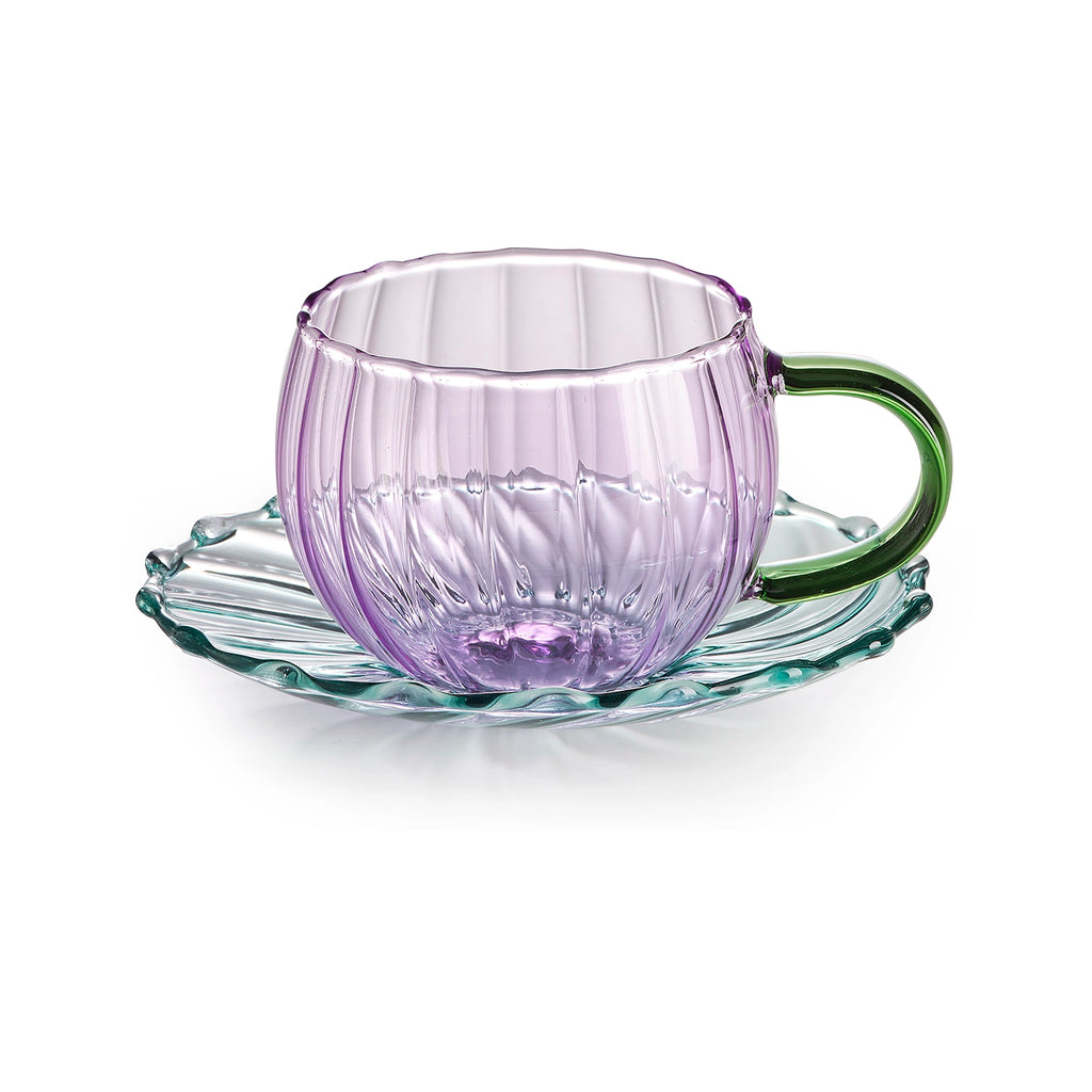Sahara set 2 tazzine caffè con piattino in vetro borosilicato ametista/verde/turchese